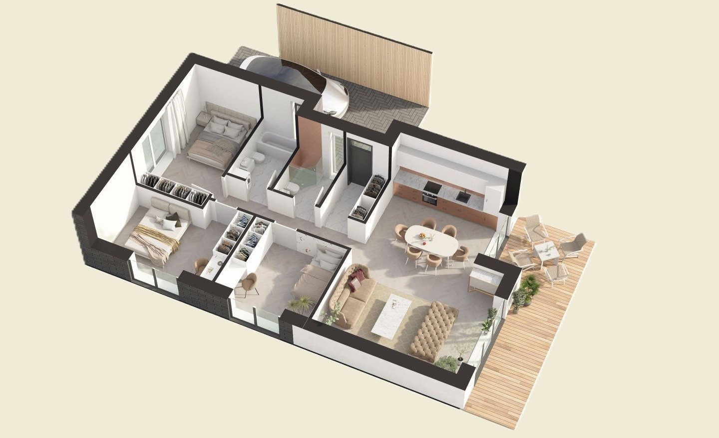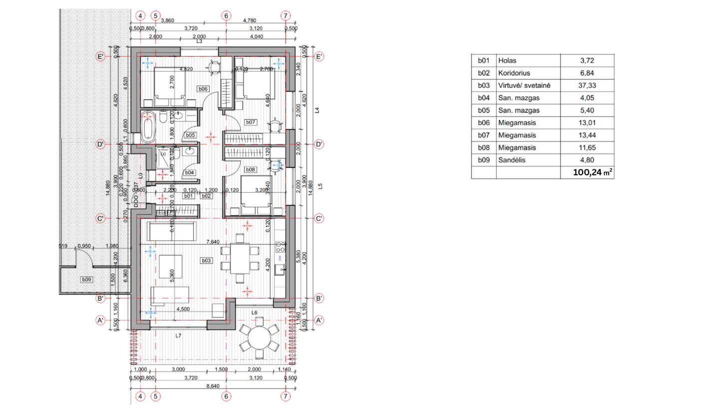 95 m² A++ energetinės klasės mūrinis namas sukurtas tiems, kurie nori harmoningos pusiausvyros tarp erdvės ir jaukumo. Šviesi svetainės ir virtuvės zona tampa namų centru, o trys atskiri miegamieji suteikia ramybę kiekvienam šeimos nariui. Du patogiai išdėstyti sanitariniai mazgai užtikrina sklandžią kasdienybę ir dar daugiau komforto.